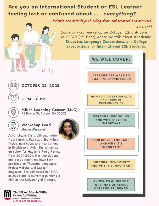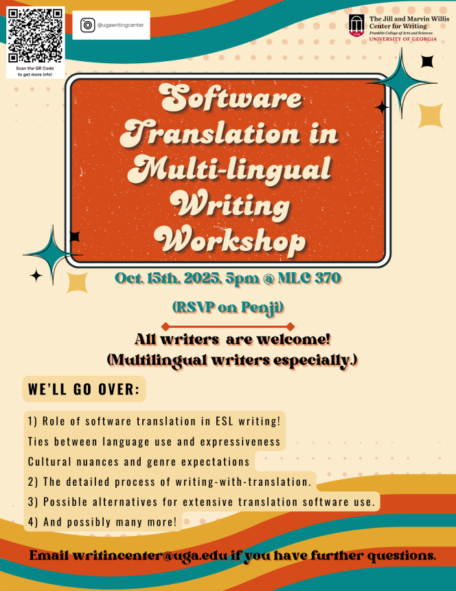 To register, please navigate to the events page on UGA’s Writing Center Platform Penji: UGA WCW Penji Community.We hope to see you there!