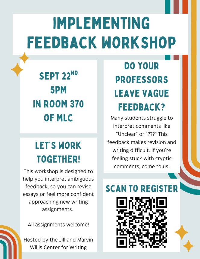 Have you struggled to interpret vague feedback like 'Awkward' or 'Expand?' If you received unclear feedback but wish to revise or avoid similar mistakes in a future essay, this workshop is for you! Here, we will go over generic comments that instructors may leave on your writing, demystifying what some of these notes can mean. Then, we will spend some time working more individually on applying feedback to your assignment.