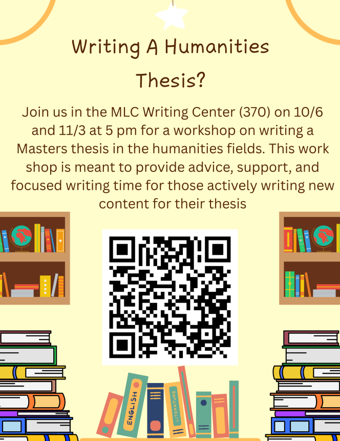Need help writing your humanities thesis? This workshop aims to help MA students with their thesis at any stage of the writing process. We will share advice on writing, provide writing time, collaborate with peer feedback, and help students feel comfortable talking about their research. We know how intimidating writing a thesis and we are here to help!